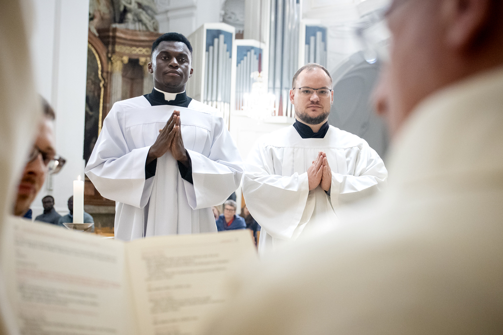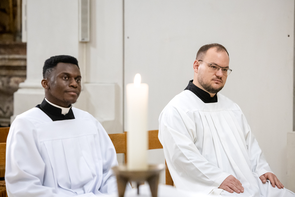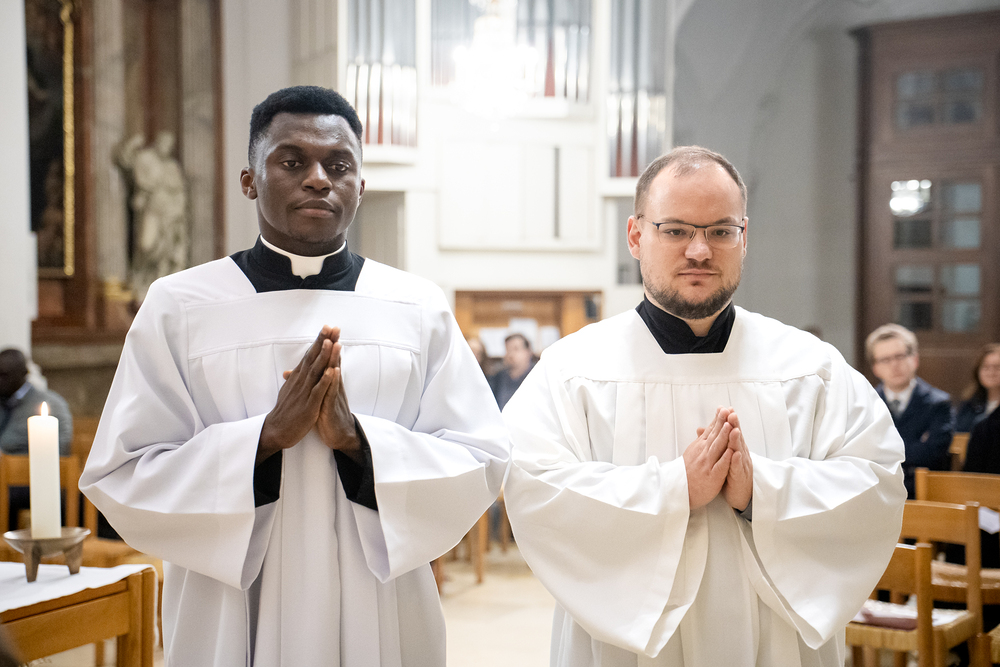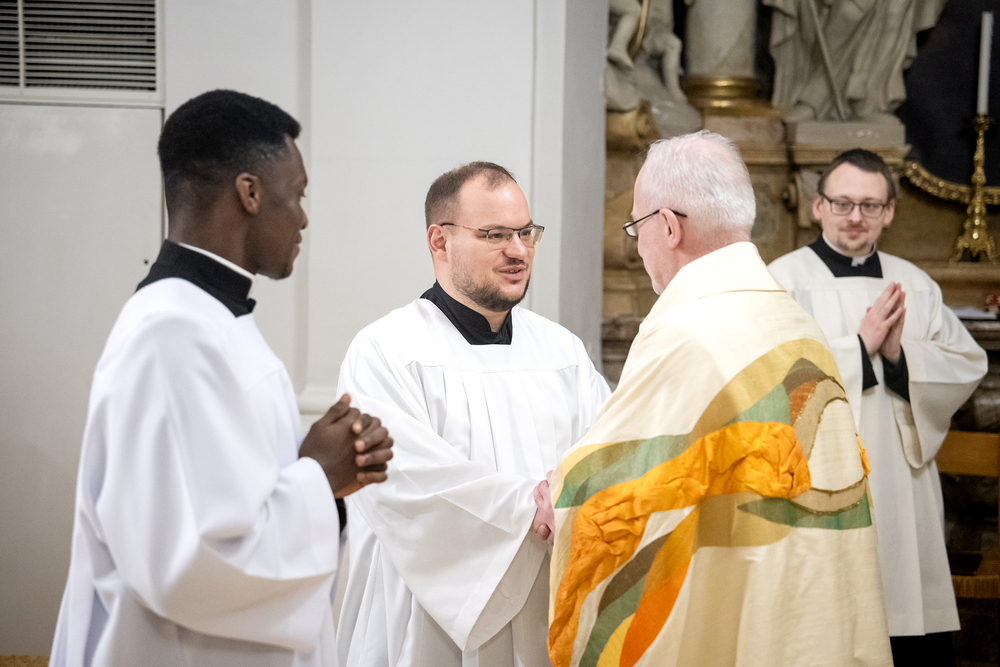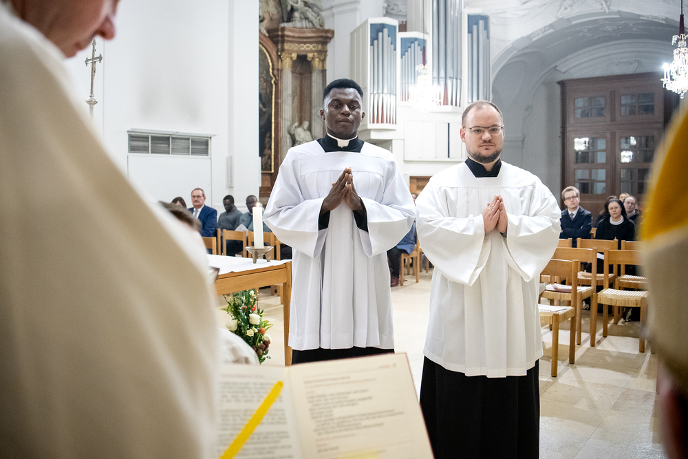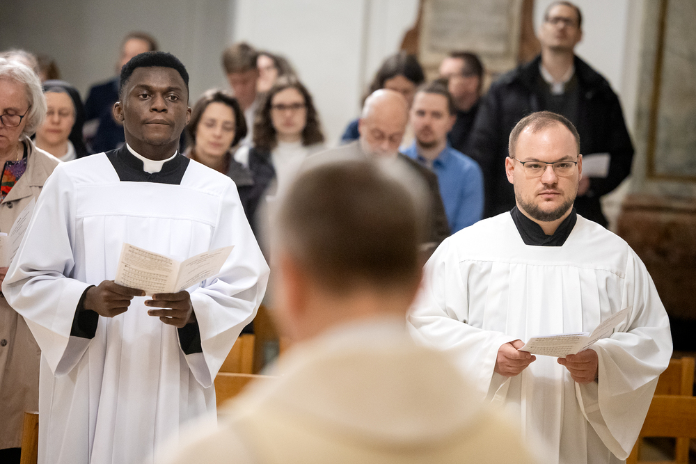 Die Admissio ist ein bedeutender Schritt auf dem Weg zur Weihe. In einer feierlichen Liturgie wird der Kandidat offiziell in die letzte Phase der Vorbereitung auf das Weihesakrament aufgenommen. Mit diesem Akt bekennt der Kandidat öffentlich seine Bereitschaft, den Dienst in der Kirche anzunehmen und seinen Weg der Berufung weiterzugehen. Diese Feier drückt die Anerkennung der Kirche aus und stärkt die Verbindung zwischen dem Kandidaten und der Gemeinschaft. Durch Gebet, Segen und Zuspruch wird der Kandidat auf seinem weiteren geistlichen Weg begleitet und ermutigt. Unter die Weihekandidaten aufgenommen wurden die Seminaristen Philipp Gartlehner und Henry Ekene Obi. Wir waren mit der Kamera dabei.