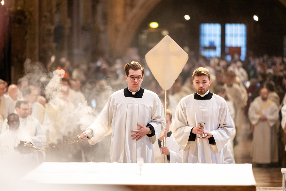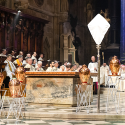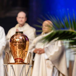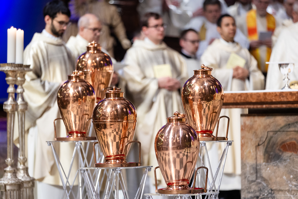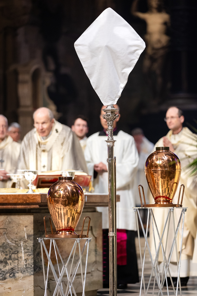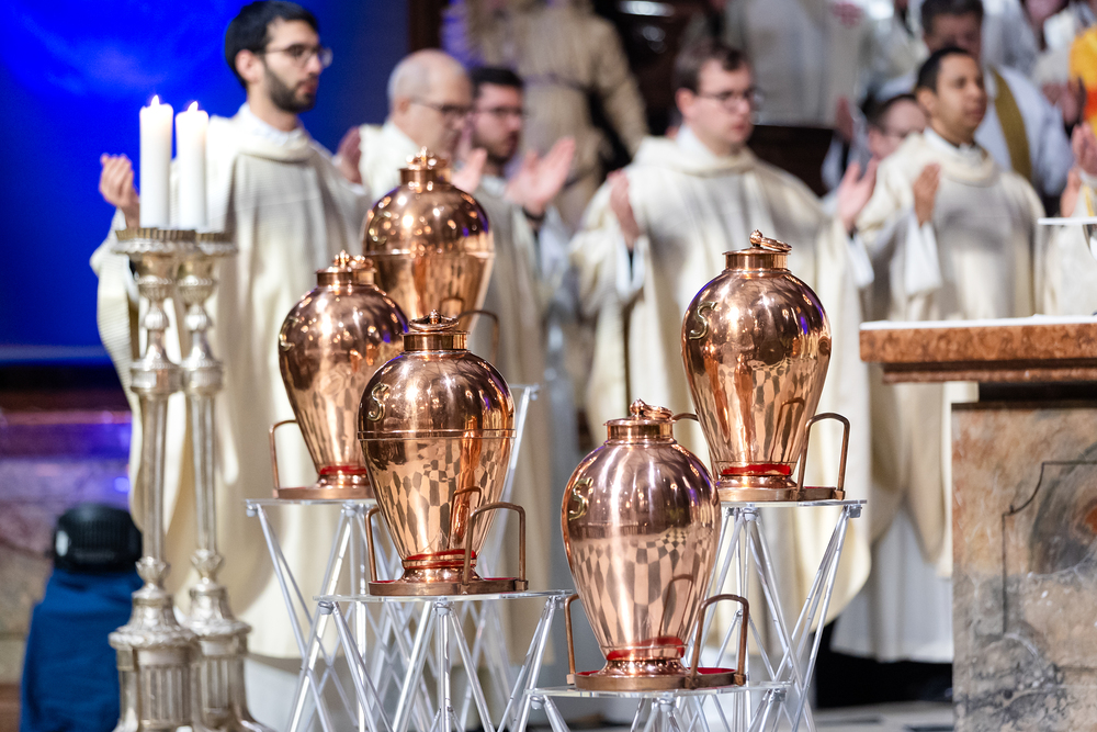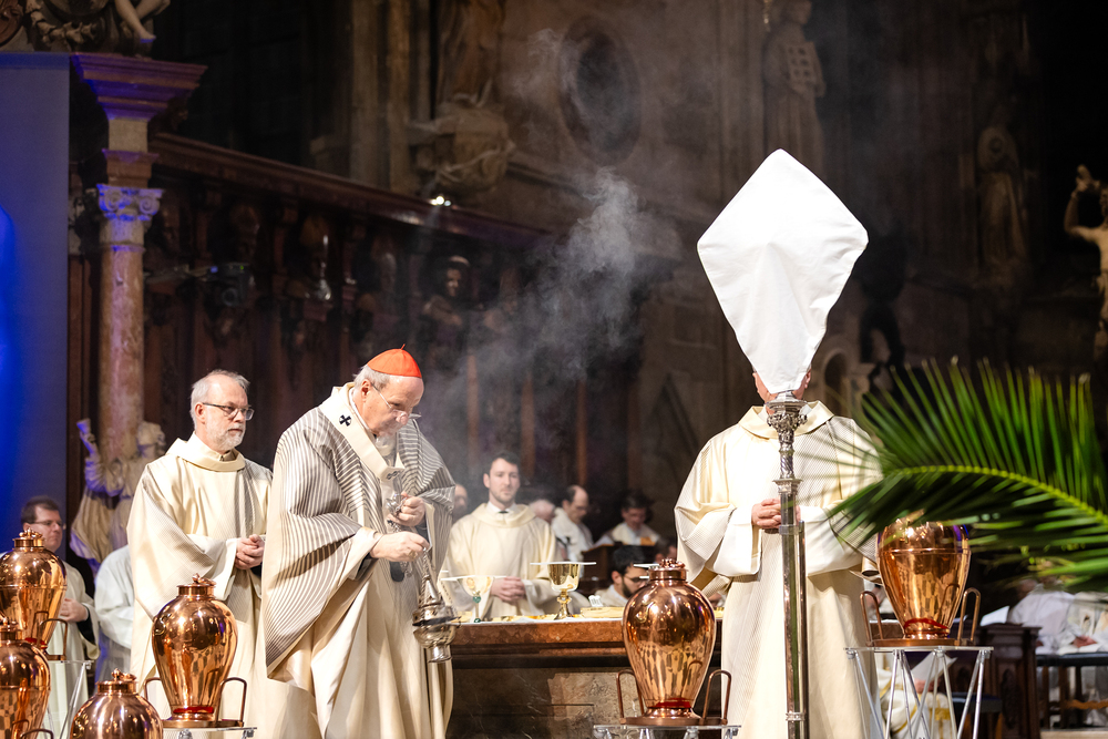Die Weihe der Heiligen Öle in der Chrisammesse versammelt zu Beginn der Karwoche Priester, Diakone und Gläubige der Diözesen im Stephansdom. Die Priester und Diakone erneuern dabei ihr Versprechen für den Dienst in der Kirche, während die anwesenden Gläubigen die Weihe der Heiligen Öle mitfeiern. Diese Öle werden während des Jahres in den Pfarreien bei Taufen, Firmungen und Krankensalbungen verwendet.